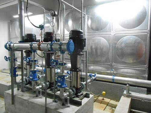 根据县城近期最大日最大时用水量来确定管径,以流速作为控制管径大小的依据。布置泵房内管路时应注意以下几点: