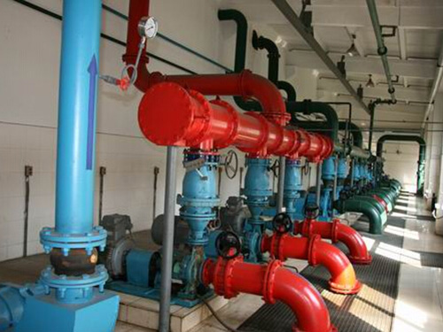 根据县城近期最大日最大时用水量来确定管径,以流速作为控制管径大小的依据。布置泵房内管路时应注意以下几点: