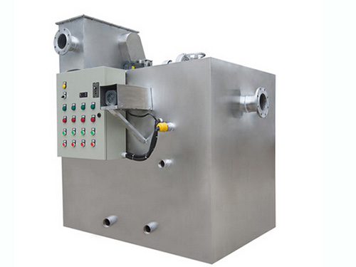 隔油池多用不锈钢或者冷轧板焊接,在矩形平面上,沿水流方向分为2~4格,每格宽度一般不超过6米,以便布水均匀。有效水深不超过2米,隔油池的长度一般 比每一格的宽度大 4倍以上。隔油池多用链带式的刮油机和刮泥机分别刮除浮油和池底污泥。一般每格安装一组刮油机和刮泥机,设一个污泥斗。若每格中间加设档板,挡板两侧都安 装刮油机和刮泥机,并设污泥斗,则称为两段式隔油池,可以提高除油效率,但设备增多,能耗增高。若在隔油池内加设若干斜板,也可以提高除油效率,但建设投 资较高。在寒冷地区,为防止冬季油品凝固,可在集油管底部设蒸汽管加热。隔油池一般都要加盖,并在盖板下设蒸汽管,以便保温,防止隔油池起火和油品挥发, 并可防止灰沙进入。