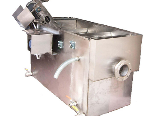 隔油池多用不锈钢或者冷轧板焊接,在矩形平面上,沿水流方向分为2~4格,每格宽度一般不超过6米,以便布水均匀。有效水深不超过2米,隔油池的长度一般 比每一格的宽度大 4倍以上。隔油池多用链带式的刮油机和刮泥机分别刮除浮油和池底污泥。一般每格安装一组刮油机和刮泥机,设一个污泥斗。若每格中间加设档板,挡板两侧都安 装刮油机和刮泥机,并设污泥斗,则称为两段式隔油池,可以提高除油效率,但设备增多,能耗增高。若在隔油池内加设若干斜板,也可以提高除油效率,但建设投 资较高。在寒冷地区,为防止冬季油品凝固,可在集油管底部设蒸汽管加热。隔油池一般都要加盖,并在盖板下设蒸汽管,以便保温,防止隔油池起火和油品挥发, 并可防止灰沙进入。