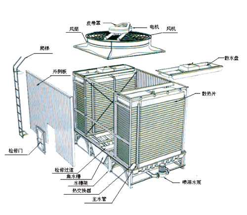 冷却塔的作用是将携带废热的冷却水在塔体内部与空气进行热交换,使废热传输给空气并散入大气中。